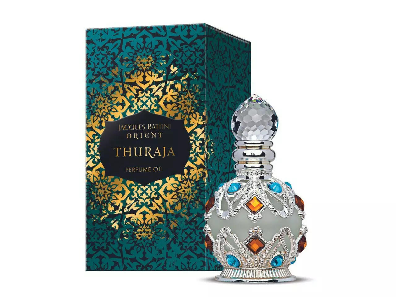 Thuraja Parfum oil Невеликий флакон, красиво прикрашений сріблястим ажурним орнаментом і всипаний блакитно-бурштиновими каменями, викликає цікавість до того, що ховається всередині. Цей чарівний флакон ховає всередині ароматну олію Thuraja, легку, класичну з делікатно проникаючим східним ароматом. Легка солодкість персика в поєднанні з цитрусовими, непомітно зливаючись з ніжним жасмином і освіжаючими водними квітами. Аромат ідеально підійде жінкам, які люблять легкі, але в той же час непомітні і стійкі аромати, які легко затримуються на шкірі.