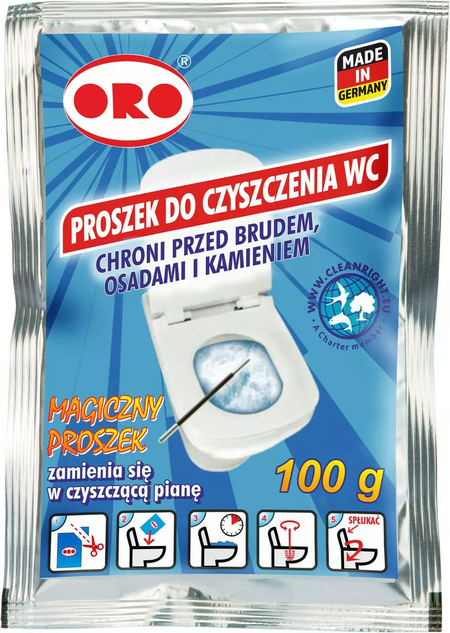 Розріжте пакетик і обережно вилийте весь вміст у миску на поверхню води. Після заливки утворюється активна миюча піна. Залиште приблизно на 15 хвилин, поки не зникне піна. Очистіть чашу щіткою і змийте воду в унітазі.